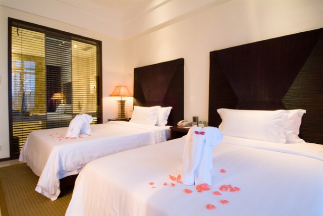 豪華園景房 面積:42平方米 樓層:1-3層 海景:無 陽臺(tái):有 大床 2*2米 雙標(biāo) 1.3*2米 浴缸:有 寬帶:免費(fèi)