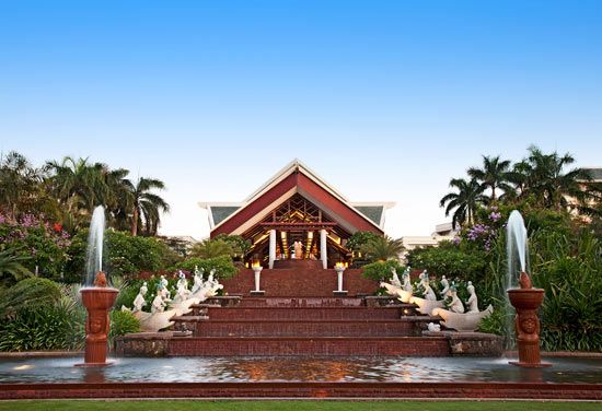三亞喜來登度假酒店擁有得天獨(dú)厚的地理位置,位于亞龍灣的中心,正對亞龍灣高爾夫球場。湛藍(lán)的大海和銀白的沙灘是海洋生物棲息繁衍的天堂和戶外娛樂活動的理想之地。酒店距離三亞鳳凰機(jī)場30分鐘的車程,離三亞市中心僅一石之?dāng)S的距離。三亞喜來登度假酒店每間舒適豪華的客房均配有空調(diào)、電子保險箱、迷你吧和衛(wèi)星電視,從客房可觀賞到壯觀的南中國海景、花木蔥蘢的熱帶花園、環(huán)礁湖泳池或18洞的亞龍灣高爾夫俱樂部。三亞喜來登度假酒店餐飲服務(wù)設(shè)施種類繁多,設(shè)有瑤池西餐廳、香料園亞洲餐廳、白云閣中餐廳、池畔吧、美景臺大堂吧、桑吧葡萄酒吧等,時尚入流,充分融合了亞歐菜肴特色。三亞喜來登度假酒店擁有亞龍灣面積最大的宴會廳,可容納1400人,宴會廳與會前接待區(qū)毗鄰繁茂的花園,是舉辦餐前雞尾酒會的理想場所。與宴會廳搭配的還有16個會議廳,均裝備最先進(jìn)的影音設(shè)施。度假村前的銀白色海灘綿延350米,康樂中心為您安排了一系列別具一格的娛樂活動,如摩托艇沖浪、滑水、航海、HOBIE、CATS、獨(dú)木舟、深海捕魚、潛水、香蕉船,還可以加入觀賞日落的海上巡游。其它運(yùn)動項(xiàng)目還有沙灘排球、足球、籃球、登山、攀巖、攀越障礙、慢跑和自行車道、燈光網(wǎng)球場等。此外,三亞喜來登度假酒店spa為您提供各種舒緩壓力、安心靜性的療養(yǎng)服務(wù),包括中國推拿、按摩、瑞士芳香按摩以及全套美容方案和精油按摩。