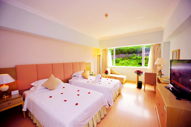 高級(jí)海景雙床房 面積:39平方米 樓層:2-8層 海景:50度 陽(yáng)臺(tái):無 雙標(biāo):1.2*2米 浴缸:大部分房間有 寬帶:免費(fèi)