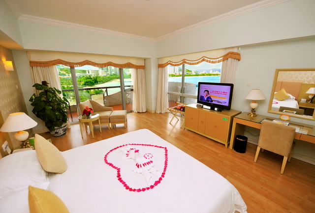 豪華海景大床房 面積:39-45 平方米 樓層:2-8層 海景:180度海景 陽(yáng)臺(tái):觀海陽(yáng)臺(tái) 大床:1.8*2米 浴缸:大部分房間有 寬帶:免費(fèi)