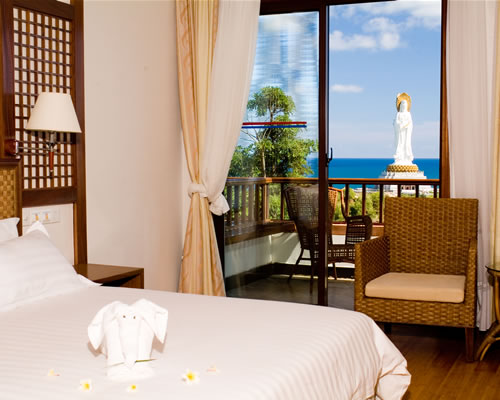 三亞南山迎賓館位于國家5A級景區(qū)南山文化旅游區(qū)內(nèi),距三亞市區(qū)42公里,距三亞鳳凰國際機場30公里,按五星級標(biāo)準(zhǔn)投資興建。獨具佛教文化特色、黎鄉(xiāng)文化特色和熱帶雨林風(fēng)格的別墅式酒店迎賓,坐落于象征無上智慧的妙金山菩提園之側(cè),與108米南山海上觀音圣像相應(yīng)對。進入酒店可以親身體驗佛教文化、觀賞熱帶雨林園林景觀,瞻仰世界上最高的海上露天大佛。祈愿觀音菩薩時刻的護佑,感受和平、慈悲、智慧的清涼勝境。代建筑風(fēng)格,二十一棟遠(yuǎn)古式的別墅錯落妙金山菩提園間,共有二百二十八間各式客房,房間裝飾典雅、別致,設(shè)備齊全,并配有獨立海景觀佛陽臺。海天佛國,利樂莊嚴(yán),朝南海觀音,沐凈土福澤。有可容納800人的全海景素齋餐廳、主營淮揚菜系的海景中餐廳等配套設(shè)施一應(yīng)俱全。是您觀光、休閑、度假及朝圣的福澤之選。